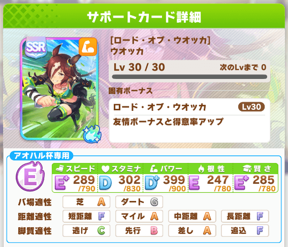 The Aoharu Hai Scenario also has its own factor, called アオハル杯シナリオ (Aoharu Hai Scenario), which grants extra power and wisdom.