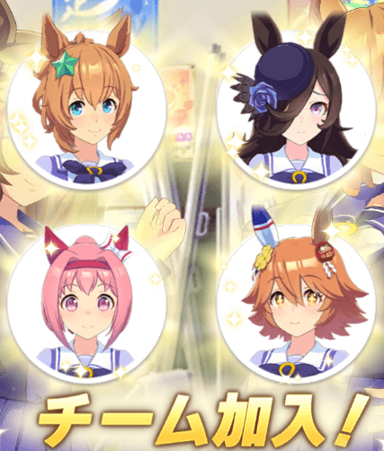 Each Aoharu Hai team race ends with a summary of your result as well as a few new random characters joining your team, to be used in following status trainings and other team races.