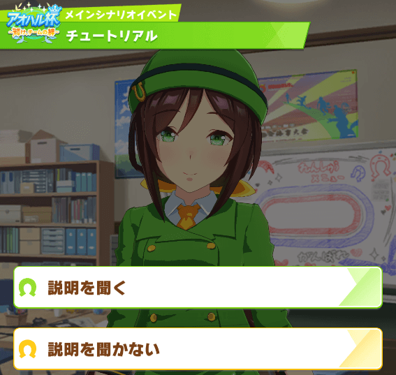 There is also an ingame event with Tazuna acting as a tutorial a few turns into the run, but it won't be covered at length here. Just know that the first choice will allow you to ask Tazuna more questions about the Aoharu Hai, and the second will let you move onto the run.