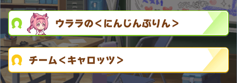 You can pick a name for your team during the Junior Class, second half of September. The Character must be either your trained uma, or one of your support cards, otherwise you can't select the corresponding team name. If you manage to win the Aoharu Finals, you will get a gold skill depending on your team name.
