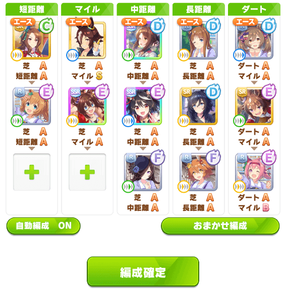 The difference is that here, you can set characters represented by support cards (or story/random team members) as part of a race group. What this means for characters that are still unplayable is that you can actually confirm their track, distance, and strategy aptitudes beforehand. Unless Cygames decides to change these for when their playable versions are released, this should prove to be very convenient for planning who you might want to save for.