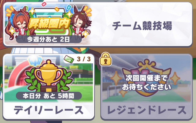 A Legend race will usually be available for three days in a row, and you’ll be able to challenge it three times a day (the same as daily races). You will compete against several horse girls as usual, however, one of them will be marked as a “legend”, and she will be your main opponent.