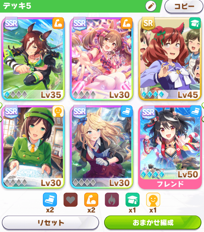 After selecting the parent, you will also be asked to pick 6 support cards (5 of yours, 1 borrowed from your Follow list). Think of these as your training partners that give various bonuses when training together with them.