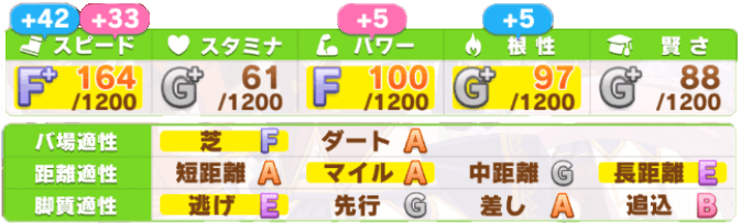 The second bonus improves the character's affinity in track type, track length, or racing strategy. In the previous picture, you can notice several values being highlighted in yellow - these are affinities improved by inheritance.