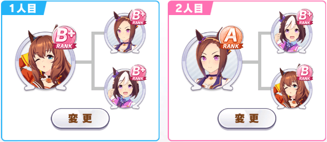 Before you start any training, the game will ask you to choose two characters that will serve as "parents" of your trainee. Any of the characters you've previously trained can be selected for this, except for the trained uma herself (a girl can't be her own parent, that makes sense).