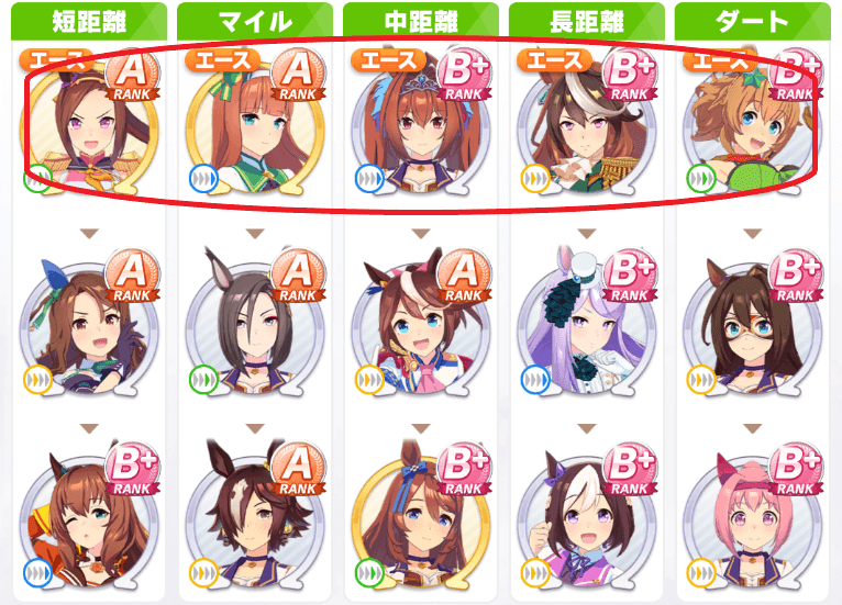 To clarify, “ace characters” refer to the characters listed in position 1 on every team - they also have an “エース” label on the character selection screen. So, to maximize your scores, you always want to put your strongest girl in the first position.